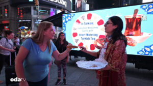 Times Meydanı’nda Amerikanlara Türk kültürü tanıtıldı: “Anadoludakiler” projesi kapsamında simit ve çay ikramıyla Anadolu’nun lezzeti ve misafirperverliği New Yorklularla buluştu.