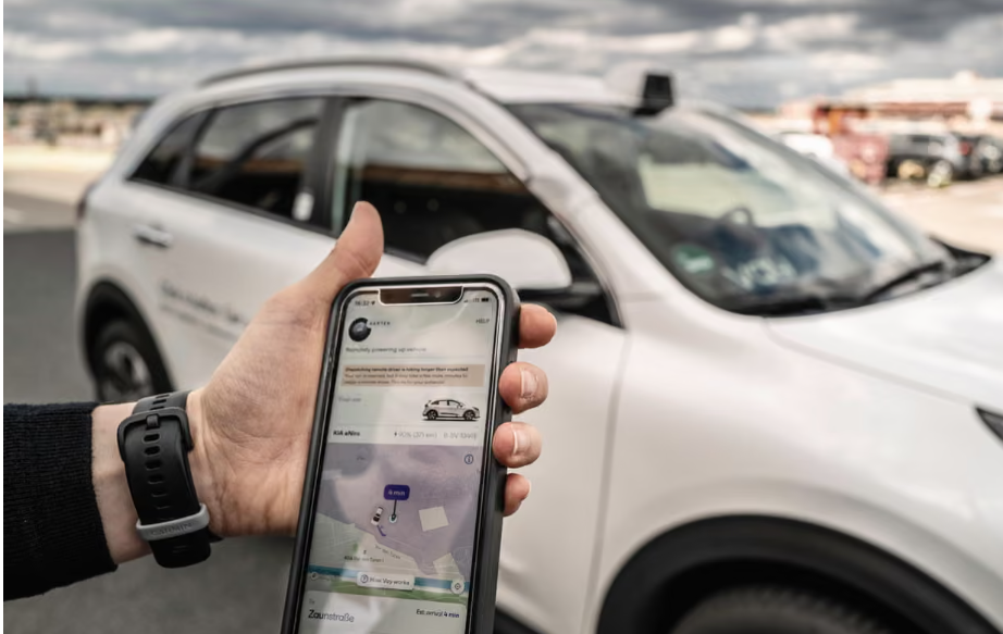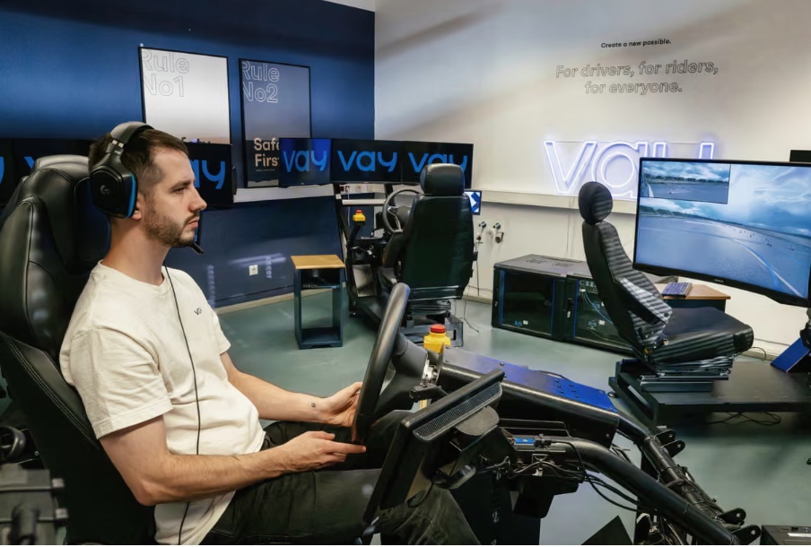 Bu, 2018 yılında kurulan ve uzaktan kumandalı araç teknolojisi geliştiren Berlin merkezli bir şirket olan Vay. San Francisco ve Şanghay’daki robot taksilerin aksine , Vay farklı bir hizmet sunuyor. Uzaktan sürücüler, müşteriye bir araba “teslim ediyor” ve müşteri aracı kendisi kullanıyor; park etme işini ise uzaktan sürücü üstleniyor.